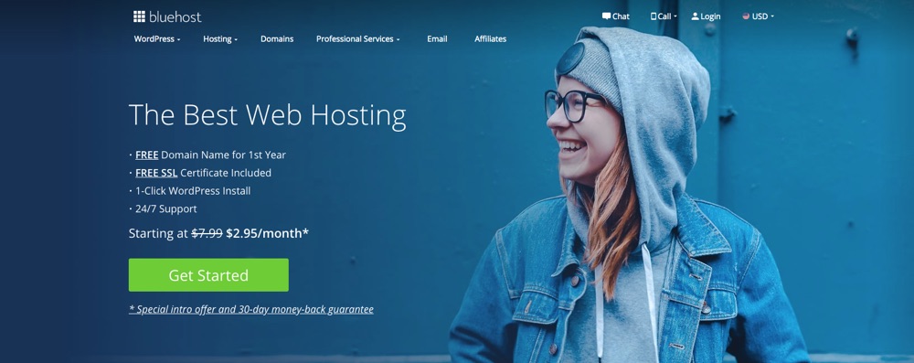 Last up is Bluehost. This shared hosting provider isn’t fancy, but it is budget friendly. And if offer perks like free domain registration for the first year, up to 25 subdomains, free SSL, 1-click WordPress installation, 24/7 support, and unmetered bandwidth – all in the basic plan. If you upgrade added features for Office 365 mailbox, site backups domain privacy and a dedicated IP address are available.